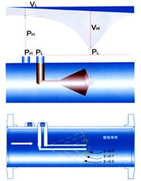混合器作用:V 錐流量計的下游所產生的旋渦是短旋渦,可在下游將介質混合,因此,目前V錐形流量計在作為流量計工作的同時,還可在很多場合用做靜態攪拌器,可迅速而充分的將介質攪拌均勻。