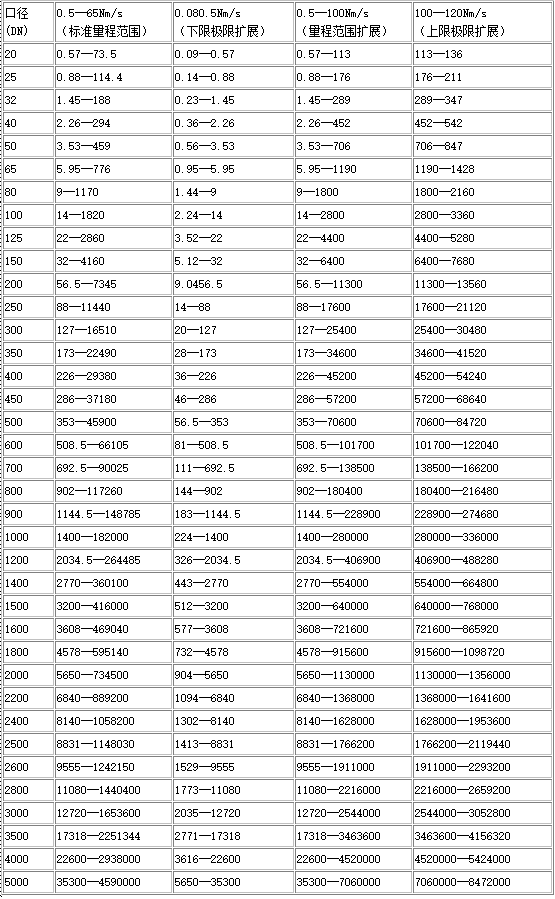 六、口徑與流量對應表