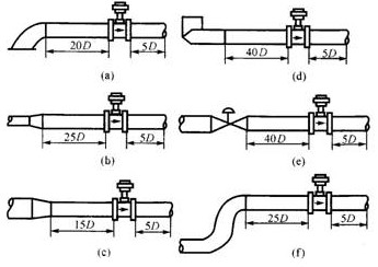 • 為了確保儀表正常、準確運行,傳感器安裝點的上下游必須有一定的直管道,以調整流場。