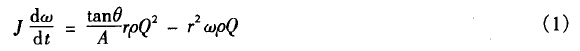 渦輪流量計(jì)以動(dòng)量矩守恒定理為基礎(chǔ)的一種速度式流量?jī)x表,對(duì)非穩(wěn)定流由于轉(zhuǎn)子葉片和相關(guān)傳動(dòng)裝置的共振、轉(zhuǎn)子的轉(zhuǎn)動(dòng)慣量、脈動(dòng)的形狀、轉(zhuǎn)子和齒輪摩擦阻力及轉(zhuǎn)子瞬時(shí)轉(zhuǎn)矩等因素影響,使渦輪流量計(jì)產(chǎn)生很大的誤差,用機(jī)翼理論來(lái)分析作用在轉(zhuǎn)子上的驅(qū)動(dòng)力矩和阻力矩,可得到其運(yùn)動(dòng)方程: