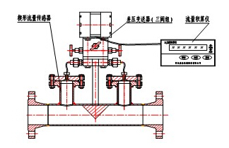 一體化智能型楔形流量計的組成如圖2所示。它由一體化楔形流量計變送器和人工智能流量運算器兩部分組成。其中一體化楔形流量變送器由楔形流量傳感器、轉(zhuǎn)接板和差壓變送器構(gòu)成。