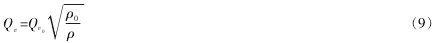 0引言 轉(zhuǎn)子流量計是常用的節(jié)流式流量計之一,具有結(jié)構(gòu)簡單、制造容易、測量范圍寬(量程比可達(dá) 10:1)、測量精度較高(誤差±5%左右)、示值直觀、維護(hù)方便、壓損小等優(yōu)點(diǎn),是現(xiàn)代生活和工業(yè)生產(chǎn)中應(yīng)用廣泛的計量器具。 在計量技術(shù)水平日益發(fā)展、測量精度需求不斷提高的今天,計量工作者只有全面了解轉(zhuǎn)子流量計的結(jié)構(gòu)原理、流量計算、量值影響因素與修正方法、以及流量計的選型、安裝要求,才能選出符合需求的計量儀表,實(shí)現(xiàn)測量效果。希望本文給計量工作者帶來些許幫助。 1轉(zhuǎn)子流量計結(jié)構(gòu)原理簡析 1.1 結(jié)構(gòu)分析 轉(zhuǎn)子流量計由兩部件組成, 一是從下向上逐漸擴(kuò)張的錐形管,二是置于錐形管中,可沿管中心線上下移動、密度比流體稍大的轉(zhuǎn)子(圖1 轉(zhuǎn)子流量計原理圖)。 錐形管由玻璃、塑料或金屬材質(zhì)制成。 玻璃或塑料材質(zhì)的錐形管上刻有流量刻度,透過錐管可看到透明流體中轉(zhuǎn)子的位置及所對應(yīng)的刻度值; 金屬材質(zhì)錐形管中轉(zhuǎn)子位置通過磁性耦合等方式傳遞管外,在面板上顯示量值。 1.2 工作原理 當(dāng)測量流體的流量時,流體從錐形管下端流入沖擊轉(zhuǎn)子,對它產(chǎn)生一個作用力,力的大小隨流量大小而變化;當(dāng)流量足夠大時,所產(chǎn)生作用力將轉(zhuǎn)子托起,使之升高;流體經(jīng)轉(zhuǎn)子與錐形管壁間的環(huán)形斷面從上端流出。 當(dāng)流體對轉(zhuǎn)子的作用力等于轉(zhuǎn)子重量時,轉(zhuǎn)子因受力平衡而停留在某一位置;這個位置與流量有相互對應(yīng)的關(guān)系,據(jù)此位置,即可求得流量值。 1.3 流量計算 流量計轉(zhuǎn)子在錐形管中受三個力:重力、動壓力和浮力,三力平衡時,轉(zhuǎn)子重力=動壓力+浮力。 當(dāng)流速變大或變小時,轉(zhuǎn)子將向上或向下移動,流體流動的截面積也發(fā)生變化,直至達(dá)到平衡時對應(yīng)的流速,轉(zhuǎn)子在新的位置上穩(wěn)定。 因此,轉(zhuǎn)子穩(wěn)定時受力關(guān)系公式如下: 其中:ρt-轉(zhuǎn) 子密度 ;ρf- 流 體密度 ;g- 重 力加速度 ;V- 轉(zhuǎn) 子體積 ;△p-轉(zhuǎn)子前后壓差;A-轉(zhuǎn)子最大截面積。 結(jié)合公式(1),并參照孔板流量計流量與節(jié)流壓差間的關(guān)系方程式: 得轉(zhuǎn)子流量計流量公式: 其中:Qv-流量值;a0-流量系數(shù)(與轉(zhuǎn)子形狀、流體狀態(tài)、流量計結(jié)構(gòu)和流體物理性質(zhì)等因素有關(guān), 只能由實(shí)驗來確定);A0-環(huán) 隙面積 ,對應(yīng)于轉(zhuǎn)子高度 h;近似有:A0=ch;系 數(shù) c 與轉(zhuǎn)子和錐形管的幾何形狀及尺寸有關(guān);ρt-轉(zhuǎn)子密度;ρf—流體密度;At-轉(zhuǎn)子最大截面積。 流量方程式可寫成: 由公式(4)可知,轉(zhuǎn)子的停浮高度 h 與流量 qv成對應(yīng)關(guān)系;根據(jù)高度的不同來標(biāo)刻流量值,即可在實(shí)際應(yīng)用中即時讀取流量值。 2測量值的流體相關(guān)性修正 2.1 測量值修正分析 從式(4)可知,被測流體的密度不同,流量大小與轉(zhuǎn)子高度之間的對用關(guān)系也不同。 因受標(biāo)定設(shè)備的限制,生產(chǎn)廠商不可能對所有流量計都做實(shí)液標(biāo)定,故測量非標(biāo)定介質(zhì)時,應(yīng)對讀出的測量值進(jìn)行修正,以保證精度。 對于液體,其密度為常數(shù),只需修正被測液體和標(biāo)定液體不同造成的影響即可;而氣體因具有可壓縮性,還應(yīng)考慮標(biāo)定狀態(tài)和實(shí)際狀態(tài)不同時溫度和壓力的影響。 通常,標(biāo)定狀態(tài)默認(rèn)為:溫度 T=293.16K,絕對壓力 p=101325Pa。根據(jù)流量計算公式,進(jìn)行如下分析: 一方面,設(shè)定在標(biāo)定狀態(tài)下,測量標(biāo)定流體的流量公式為: 式中:Qv0-標(biāo)定狀態(tài)下標(biāo)定流體的流量示值 ;a0-標(biāo)定狀態(tài)標(biāo)定流體的流量系數(shù);ρ0-流體在標(biāo)定狀態(tài)下的密度。 另一方面,設(shè)定流量計在工作狀態(tài)下,測量被測流體的流量公式為: 式中:Qv-工作狀態(tài)下被測流體的流量示值;a-工作狀態(tài)被測流體的流量系數(shù);ρ-流體在工作狀態(tài)下的密度。 由式(5)和式(6)可以看出,在實(shí)際工作狀態(tài)下,被測流體的實(shí)際流量為 qv,但轉(zhuǎn)子在高度 h 處,轉(zhuǎn)子流量計的顯示仍然是 qv0。 比較式(5)和式(6),可以得出 Qv和 Qv0之間的關(guān)系,即流量修正公式為: 實(shí)驗表明,流量系數(shù) a 與雷諾數(shù) Re 和流量計結(jié)構(gòu)有關(guān),當(dāng)被測流體的黏度與標(biāo)定流體的黏度相差不大時,或在流量系數(shù) a 為常數(shù)的流量范圍內(nèi),可不考慮 a 的影響,即可以認(rèn)為 a=a0,所以(7)式可以簡化為: 若被測流體的黏度相對標(biāo)定流體的黏度相差較大,則應(yīng)考慮黏度差異對實(shí)際流量系數(shù) a 與標(biāo)定流量系數(shù) a0間的差異,參照式(8)進(jìn)行修正或進(jìn)行實(shí)際標(biāo)定,不能簡單地認(rèn)為 a=a0。 2.2 流體密度修正 2.2.1 液體流量的測量值修正 流量計對液態(tài)類流體的測量示數(shù)通常采用水為參照流體,在標(biāo)定狀態(tài)下進(jìn)行標(biāo)定。 實(shí)際測量非水液體流量時,只需修正被測液體和標(biāo)定液體(水)之間密度差異