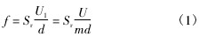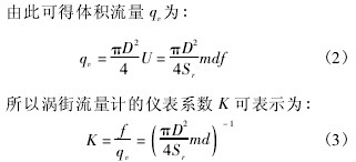式中: f 為旋渦頻率; Sr為斯特勞哈爾數; m 為旋渦發生體兩側弓形面積與管道橫截面面積之比,不可壓縮流體中,由于流體密度 ρ 不變,由連續性方程可得到 m = U/U1。
