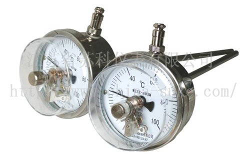 不銹鋼電接點雙金屬溫度計是利用溫度變化時帶動觸點變化,當(dāng)其與上下限觸點或斷開的同時,使電